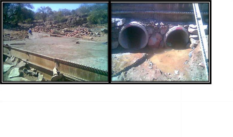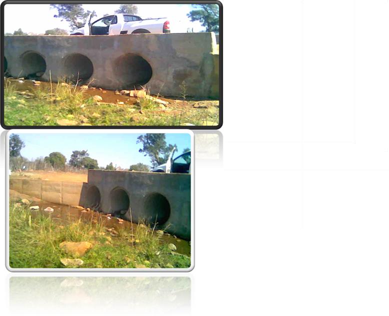 Details of the project: The project entailed the construction of a bridge that spanned across 8 meters of its surface with 4 950ø concrete pipes used as discharge points due to the intensity of the water that needed to be catered for at that point. The successes of this project also depended on the involvement of the community which was very co-operative. |